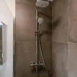 Genießen Sie den Komfort eines Badezimmers im Huswell - Modern And Bright Studio In Centre Of Knokke, das mit Badelaken ausgestattet ist.